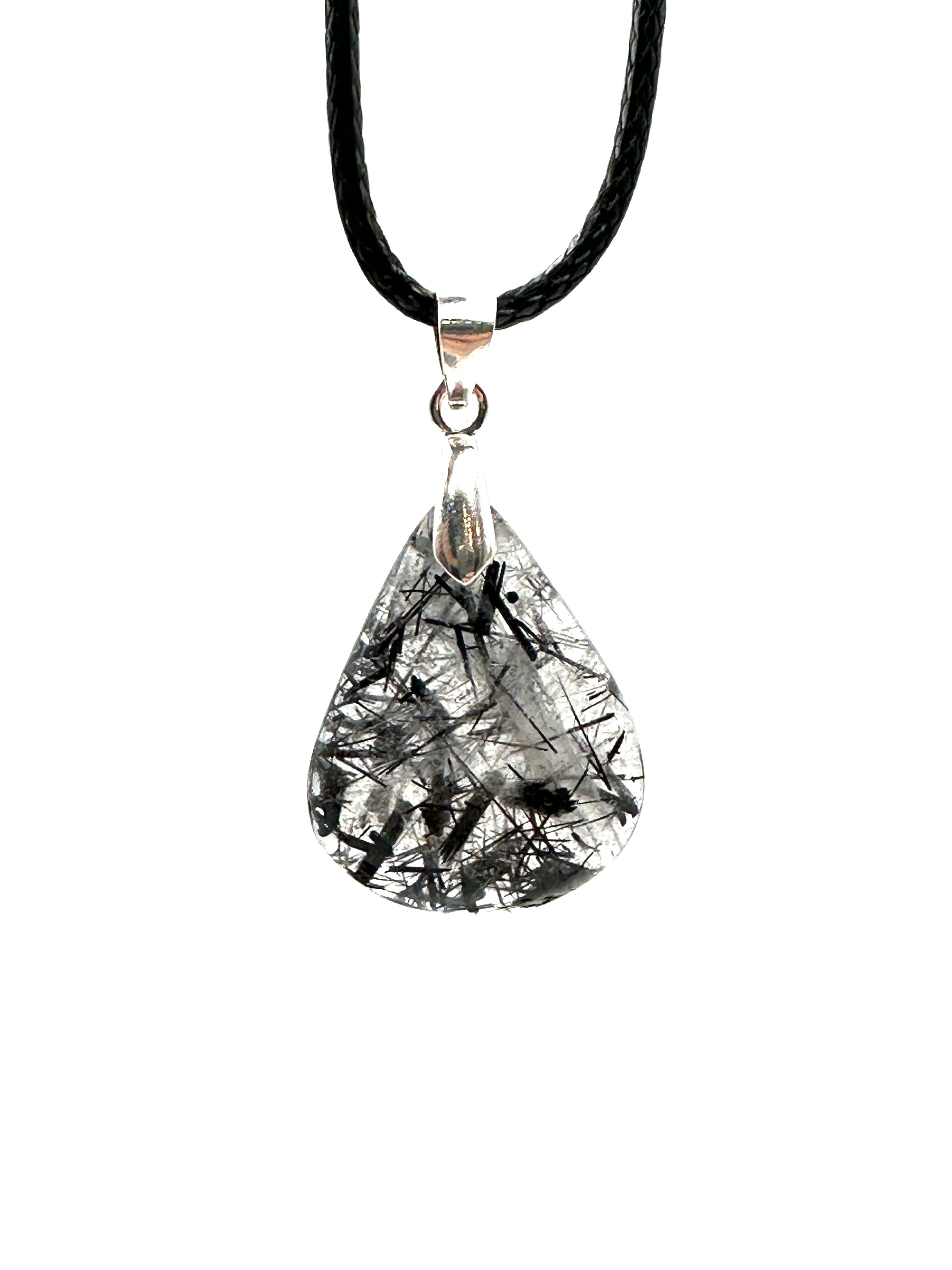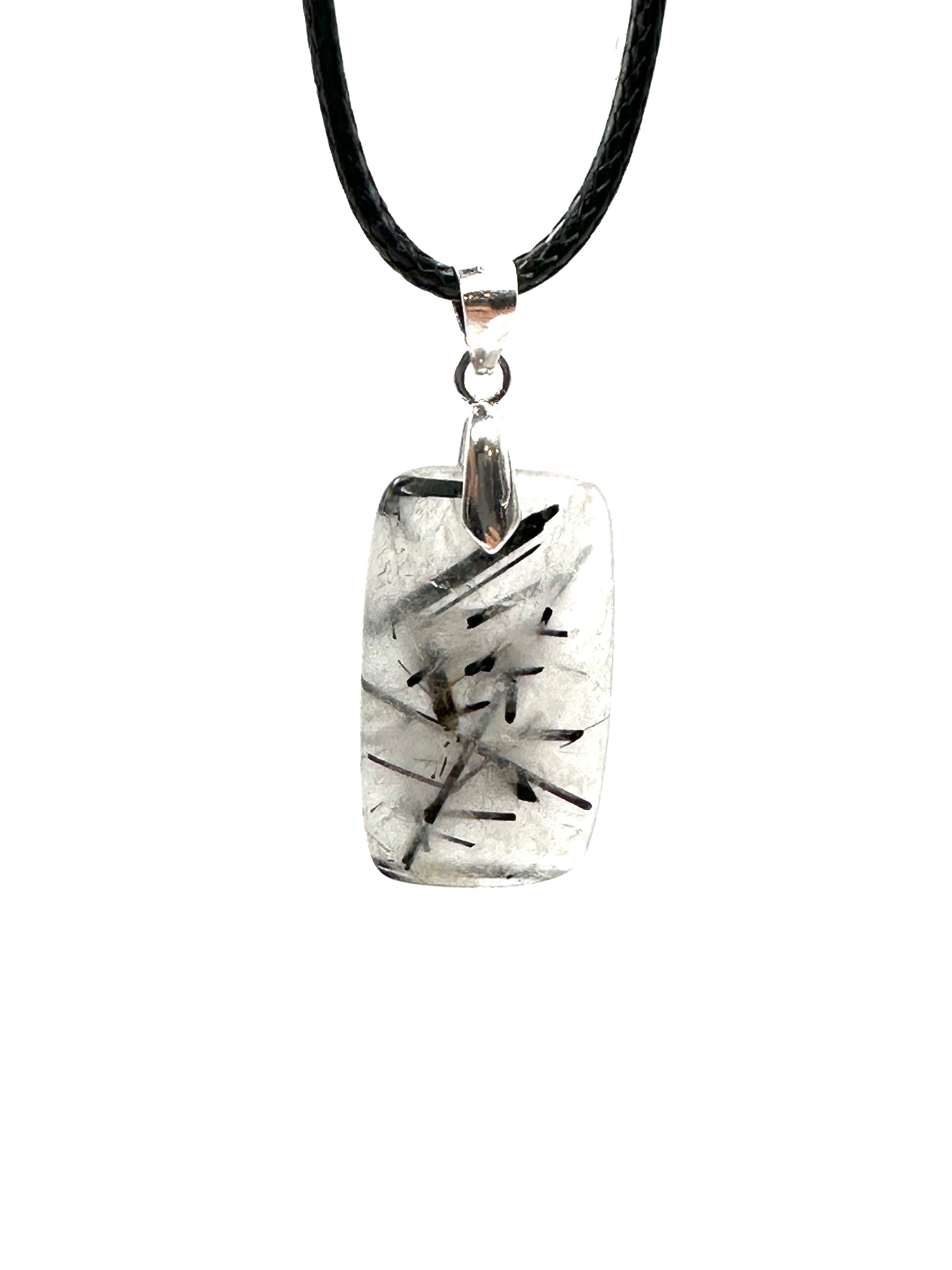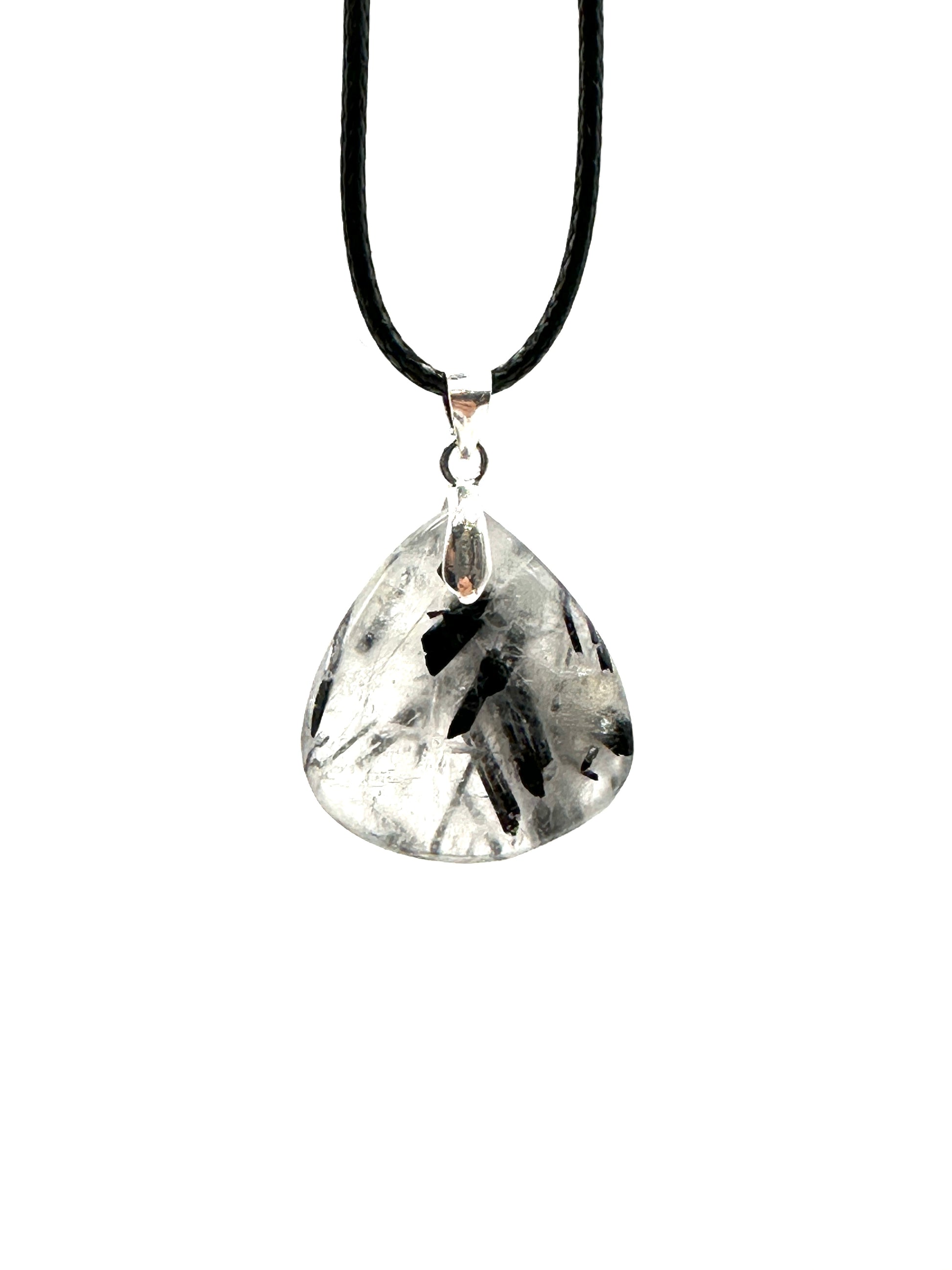Colgante de cuarzo turmalinado y plata: un talisman personal que te limpia, protege y fortalece cada vez que lo llevas puesto.