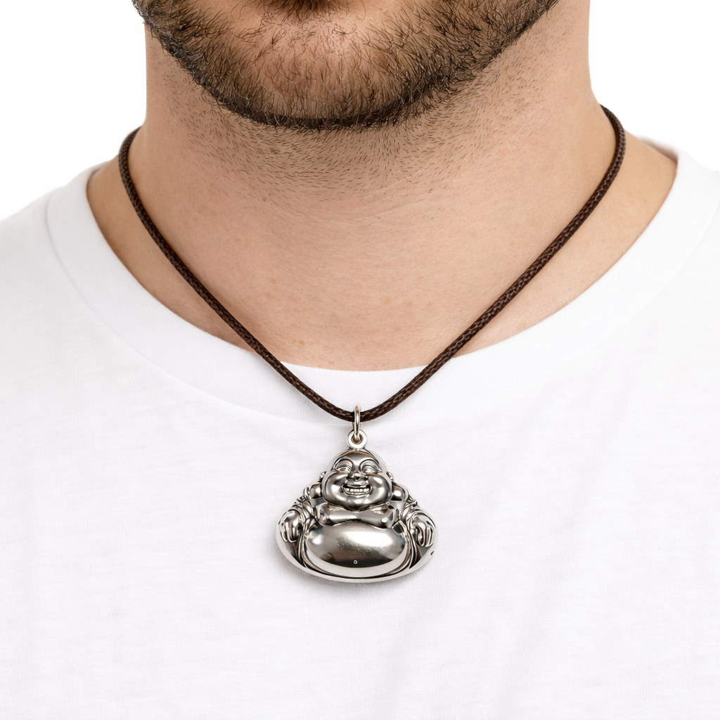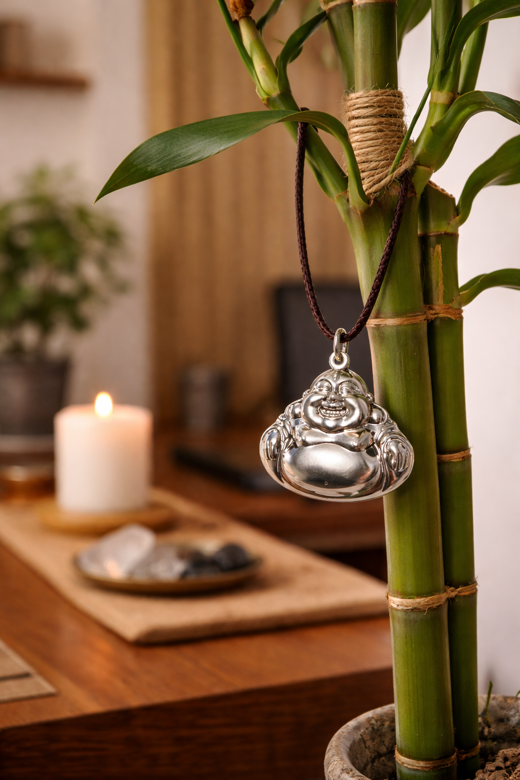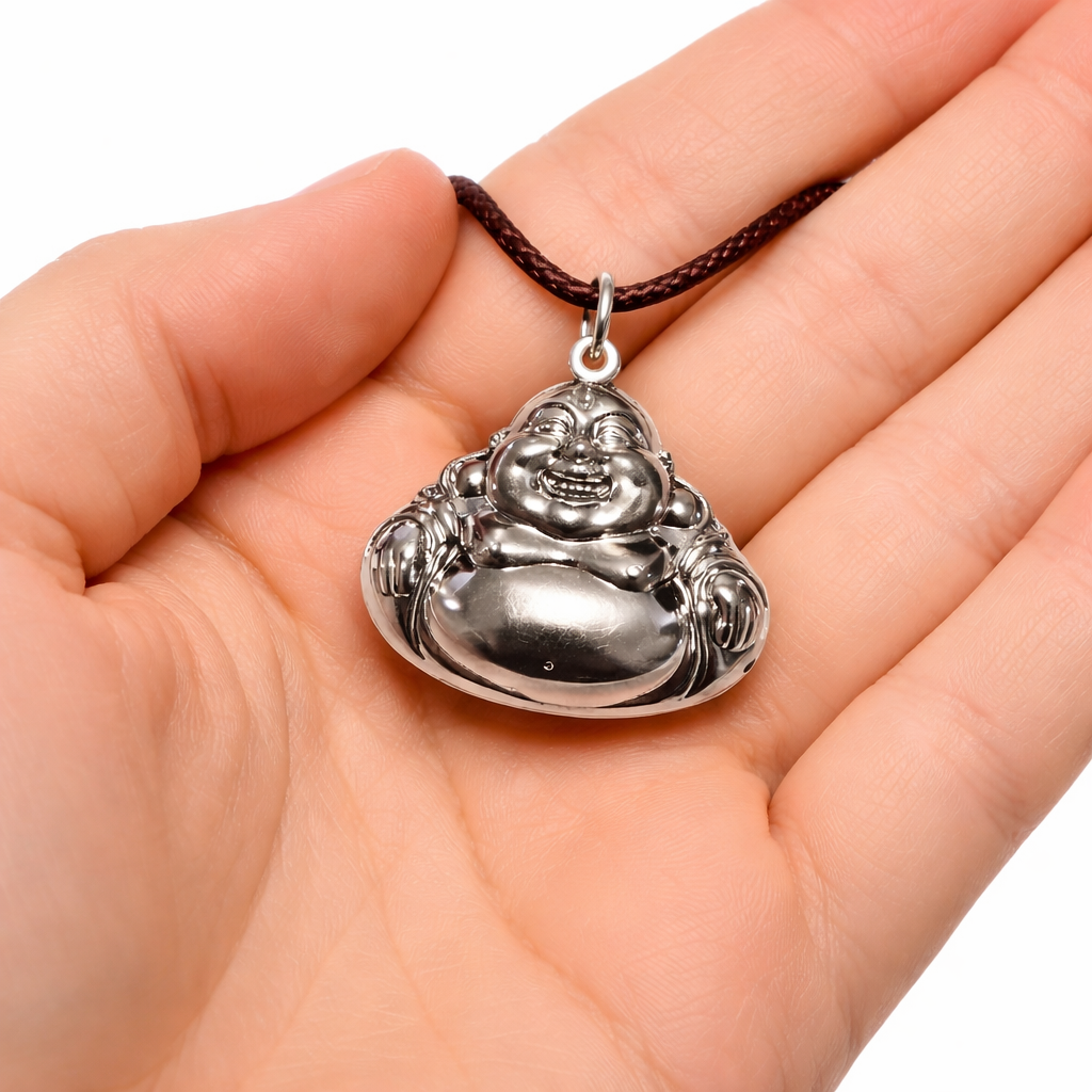Talismán a dos caras de Hotei, también conocido como Budai, es una figura ancestral de la tradición oriental profundamente asociada con la abundancia y la alegría.