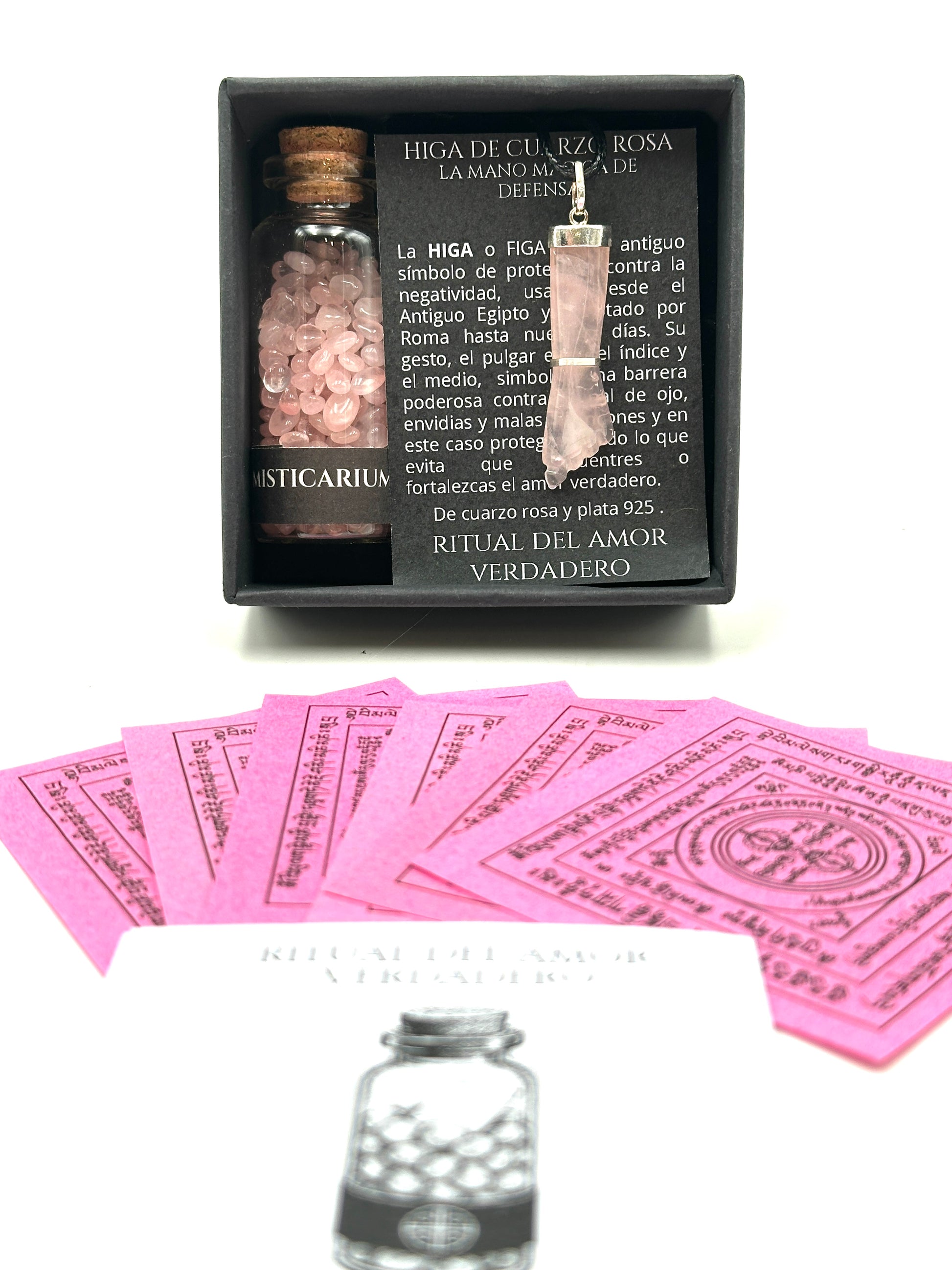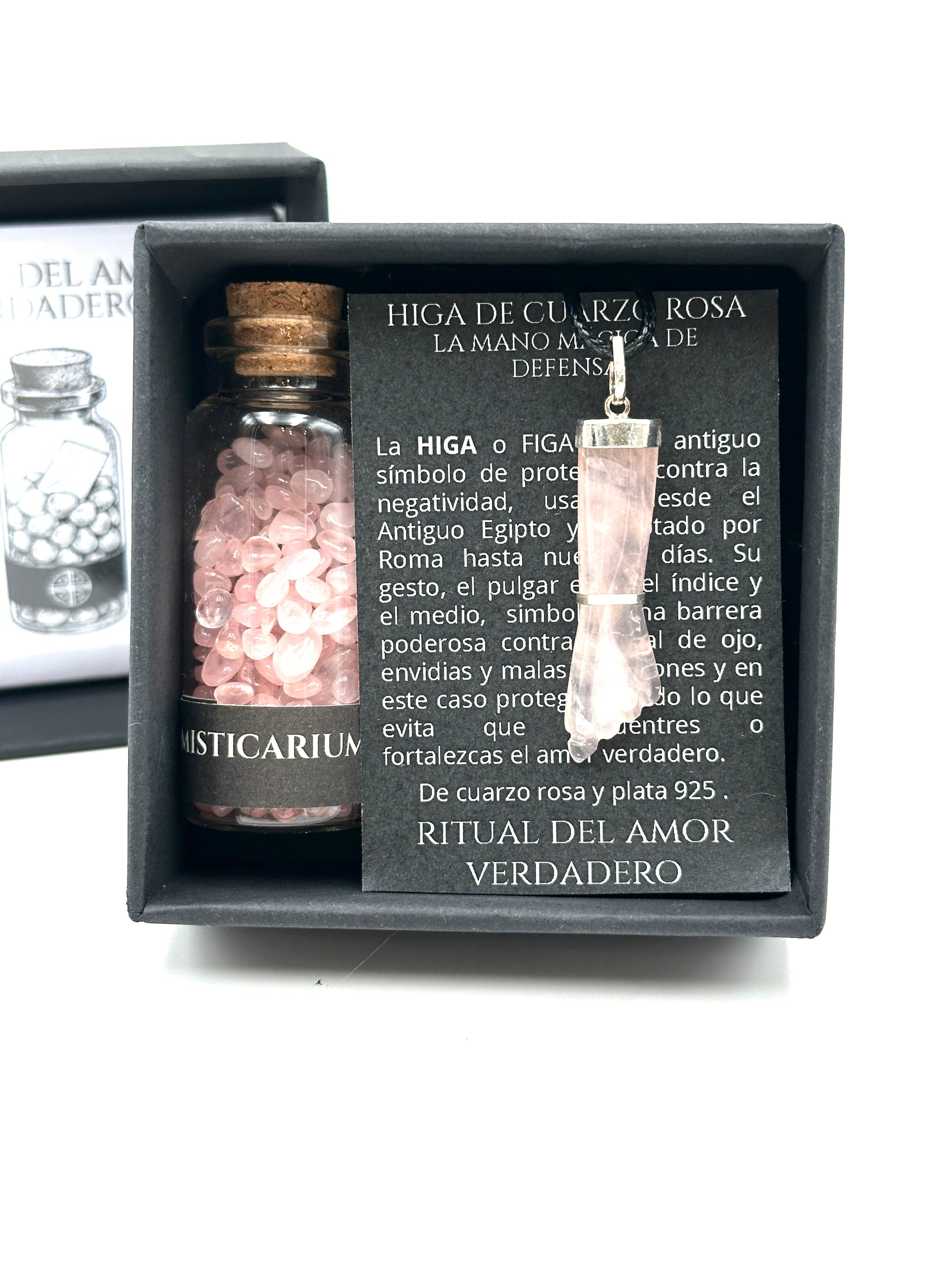 RITUAL DEL AMOR VERDADEDO CON HIGA DE CUARZO ROSA MONTADA EN PLATA Y CUARZOS ROSAS.